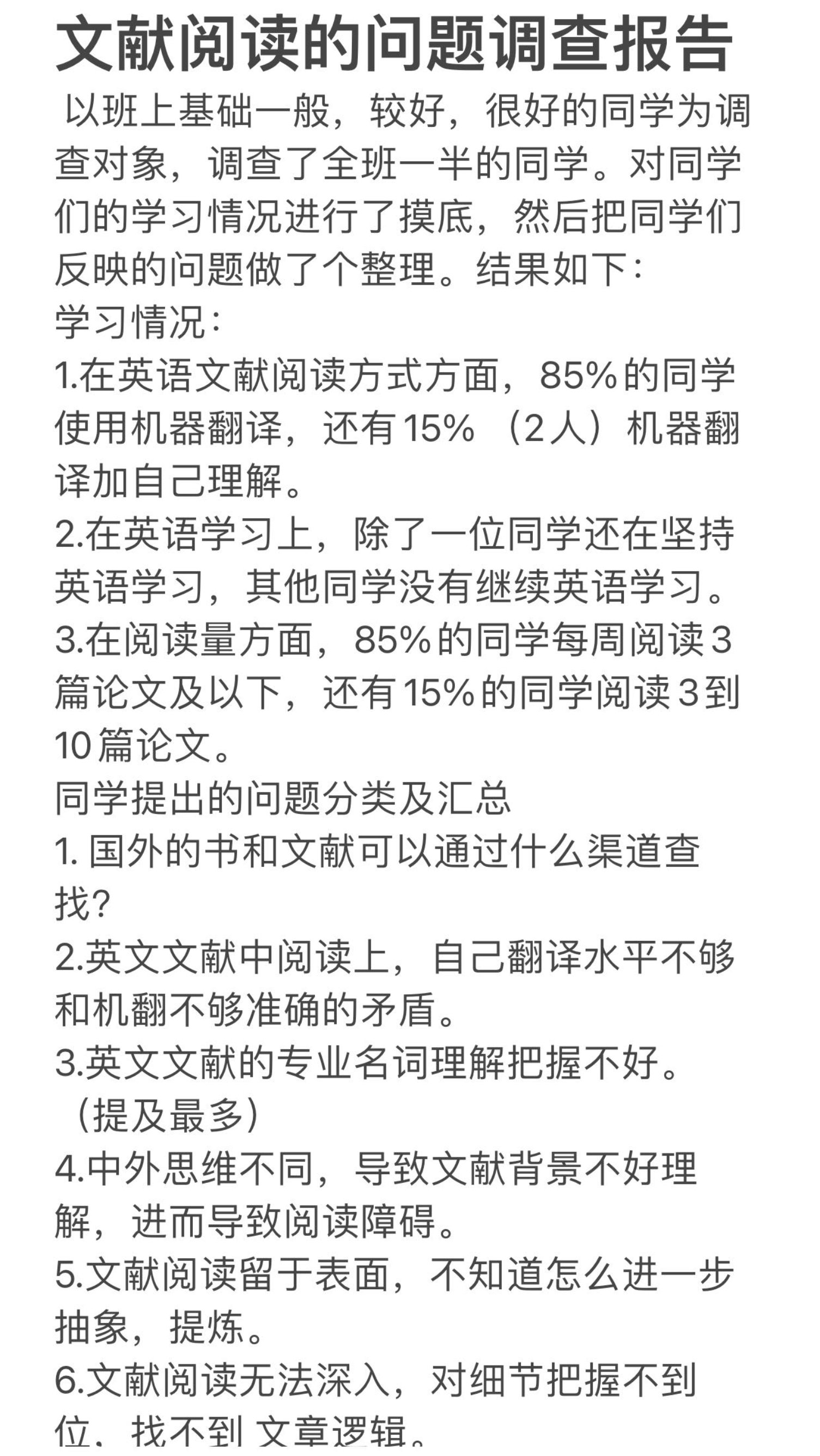 为做好此次活动,此前,2021级劳动关系硕士班党支部通过发放调查问卷、访谈等方式专门进行了调研,全面了解了全班同学在学习中遇到的难点、痛点,并及时召开支部委员会商议活动方式、时间安排等内容,并起草形成了《文献阅读的问题调查报告》《2021级劳关硕士党支部委员会关于开展 “我为师生办实事”的活动方案》,切实做到纲举目张、有序推进。今后,支部还将按照既定计划,聚焦“理论学习”“职业发展”等主题继续推进“我为师生办实事”实践活动,切实发挥党支部的战斗堡垒作用。