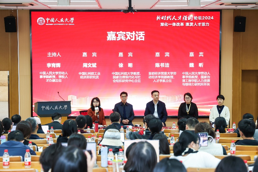 当天下午的论坛围绕着三个重要的研讨专题而展开。在“教育科技人才一体改革”专题,浙江大学教授、浙江省人才发展研究院院长陈丽君作了专题演讲,中国社科院工业经济所研究员周文斌,中国社科院大学教授、国家治理现代化与社会组织研究中心主任徐明,性交视频 教授、学校人才办副主任李育辉,性交视频 教授、国家治理工程学院人力资源与领导力研究所所长魏昕,首都经济贸易大学劳动经济学院副教授、人才学系主任陈书洁等专家学者围绕该专题展开了对话和研讨。